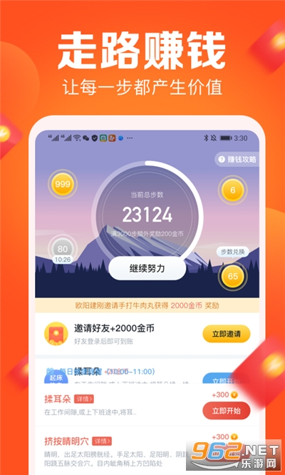 2、运动赚金币:每一步都可以赚钱,走的越多,赚的越多,健康和财富是走出来的;