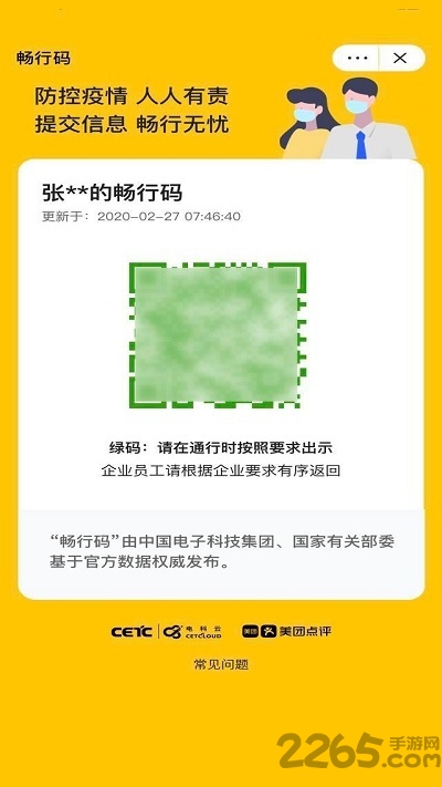 在当前复工复产人员大规模跨省市流动的背景下,“畅行码”可实现“一码畅行全国”,解决当前许多产品仅接入地方数据,造成不同省市疫情防控健康证明的算法不同、标准不一而给跨行政区域管控带来的问题,为全国各地一盘棋精准防控提供了有力工具;“畅行码”开发人员表示,在开发之初,首先考虑的就是数据信息的安全问题,系统严格执行中央网信办发布的《关于做好个人信息保护利用大数据支撑联防联控工作的通知》要求,全面加强数据管控;当前,各地政府、企事业单位对“畅行码”服务需求强烈,中国电科与美团设立了面向全国各级政府及相关部门的咨询专线,助力各地疫情防控和复工复产。