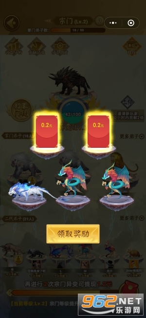 1、解锁更多全新的玩法,将相同的异兽进行合成,还能得到更高级的异兽,还能赚取红包。