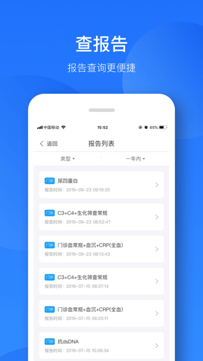 3.取报告单:在家也能查看报告单,无需往返医院查询、取单;