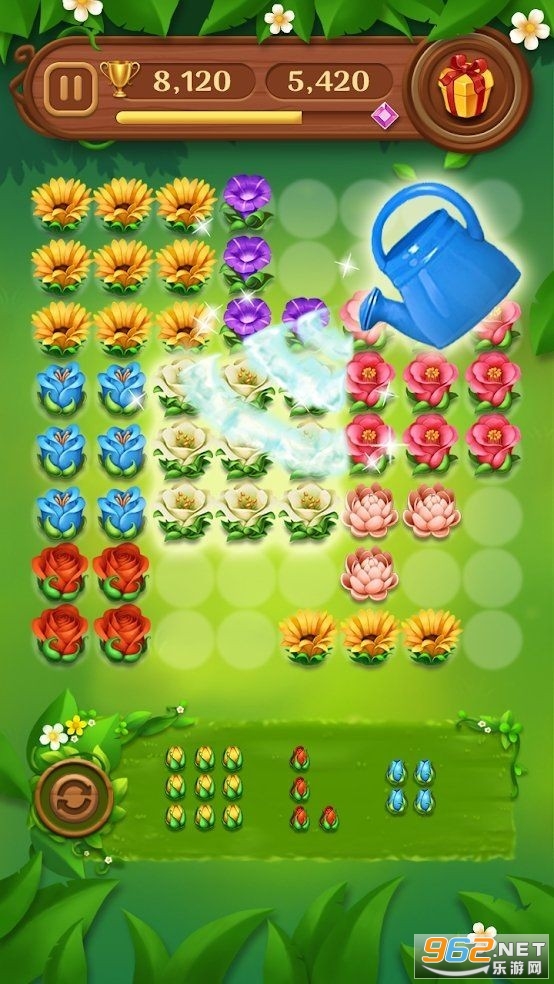 2、花园设置丰富关卡,每次摘花挑战难度不同,遇到麻烦你可以使用水壶工具,给鲜花浇水看看。