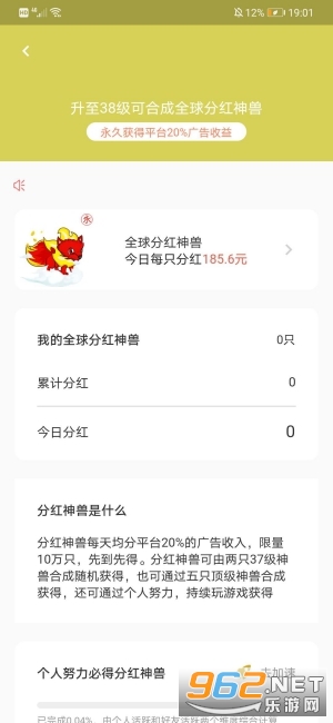 获得分红兽有3种方式,两只37级神兽合成有一定几率获得;指定五尊38级神兽合成必得分红兽;每天坚持登陆活跃,修炼度达100%必得全球分红兽。