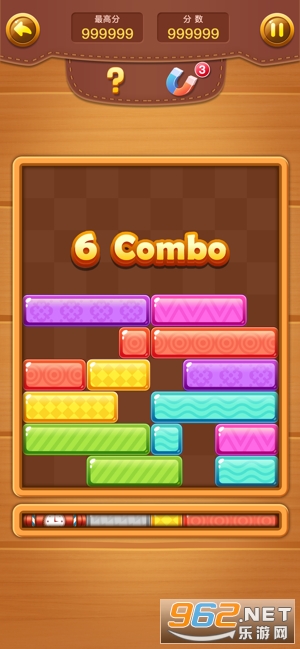 3、屏幕中间会有不同的颜色方块,将相同那个的颜色方块来移动到一起,你就可以完美的消除。
