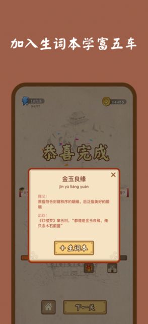 3、每关结束后,会展示一个成语故事成语典故,在玩中也能够学习。
