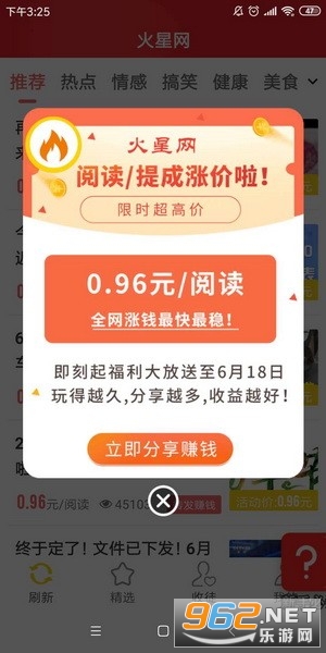 轻松完美的手机赚钱平台,简单的赚钱方式方法,每天躺在家里阅读就能获得零花钱,门槛低收益好,提现也方便轻松,感兴趣就来962试试吧!