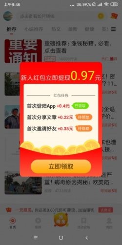1、轻松的进行观看各种新闻,就可以获得少量的金钱;