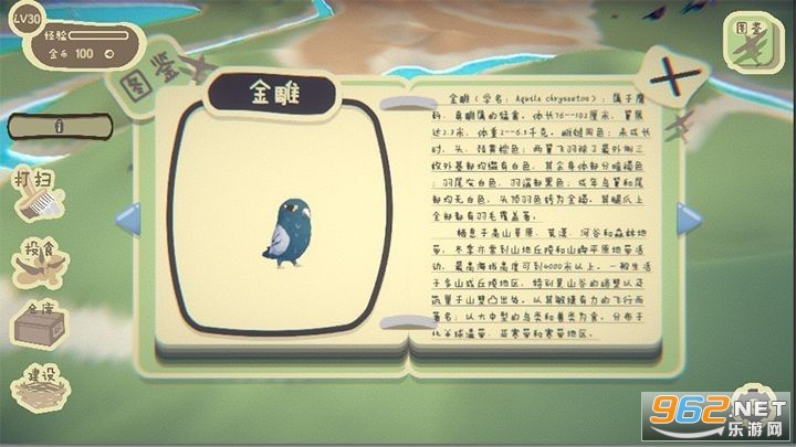4、等级达到一个值时,在我们提供的图鉴中,便会产生新的鸟类,并且可以开拓新的区域来建造新的鸟巢。