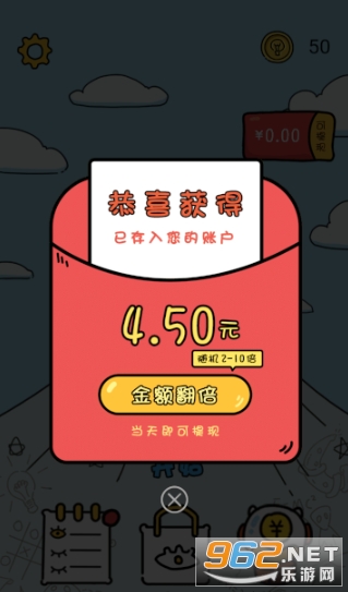 一款好玩的赚钱小游戏,通过简单的游戏玩法来赚钱,0门槛0投资,所有人都可以参与,每天都有红包拿,喜欢就来体验体验吧!