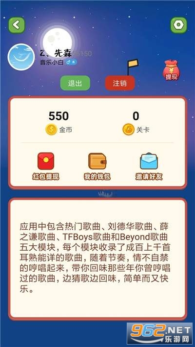总体来说一款非常不错的通过猜歌闯关来赚钱的软件,软件的界面十分的清爽,而且十分的丰富玩起来有趣,而且可以通过简单的方式来获取不错的收益,每天花一点点时间即可,喜欢的亲们赶紧下载吧。