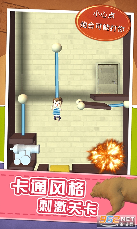 充满趣味的挑战冒险,下方危机重重,割绳子要谨慎注意,绝对不能出现伤亡。