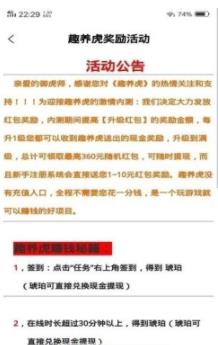 3.每升1级您都可以收到趣养虎送出的现金奖励,升级到满级。