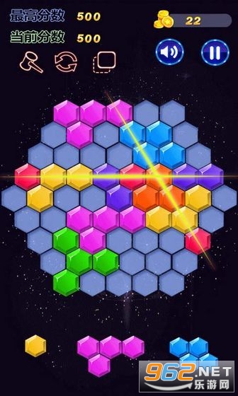 经典有趣的消除闯关游戏,每当完成三个同颜色的六边形组合在一起就能自动的消除掉