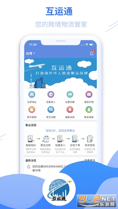 互运通是一款海外集运物流App,用户使用App提供的唯一标识将商品寄往App内的仓库地址.仓库确认收到商品后,可通过App预报商品、选择发货路线、合包下单、计算运价、支付运费、物流跟踪等操作,便捷的管理自己的跨境物流订单。