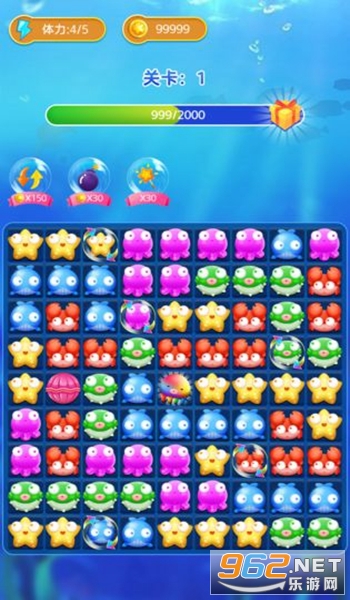 2、耐玩性十足的全新消除游戏,与各种海底生物互动;