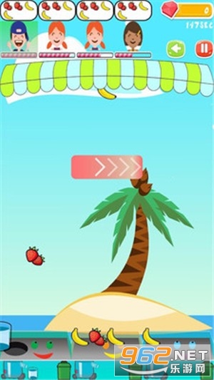 夏天来了,让我们放松一下,开始榨果汁吧!在这个游戏里,你是一位果汁售卖员,需要制作客人点的各类果汁。然而在制作前,你得拿到正确的食材。准备正确的食材并不容易,你得同时控制三张制作台。别担心,你的客人在刚开始等候时会非常有耐心,可是时间久了以后,他们会变得不耐烦。同时,他们的要求也越来越高,有时候想要蔬菜汁,有时候想在果汁里加点特别的东西。快来接受挑战吧!