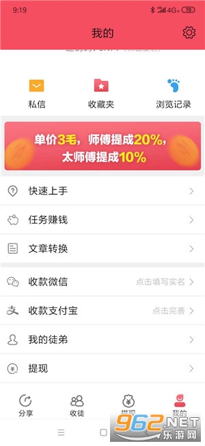 有效收徒享受徒弟20%、徒孙10%转发收益提成。