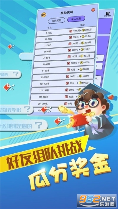 1、只有全部答对才能瓜分惊喜的大奖,即使是差一题的玩家也没有什么奖励;