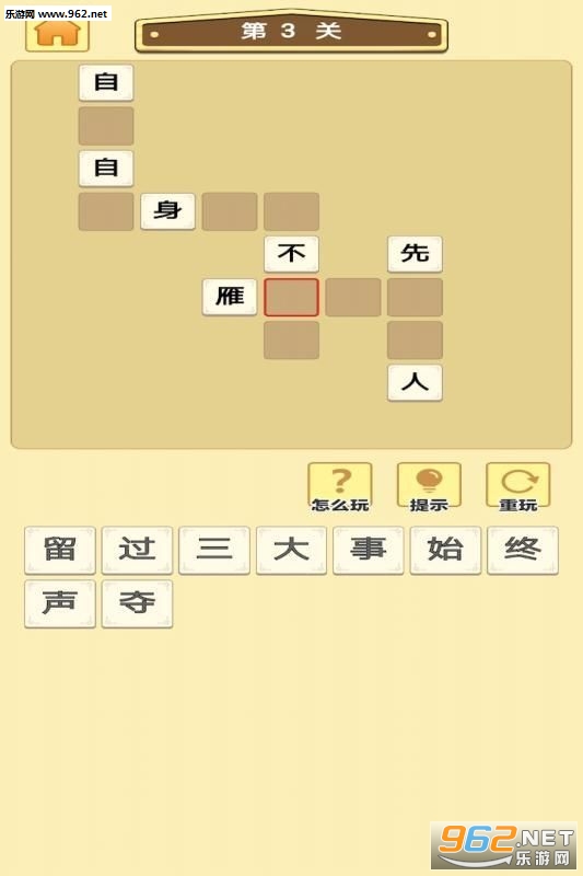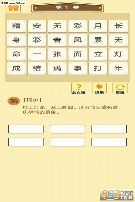 2、击屏幕关卡进入,界面上方为题目,下方未汉字输入;