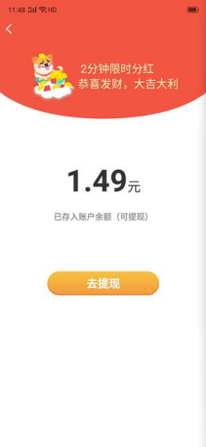 2.限时两分钟结束后可以获得1元左右奖励,在奖励中可以直接提现0.3元。