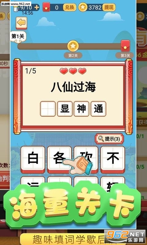 2、海量关卡无重复,无论你是初出茅庐的萌新,还是出口成章的成语大神,都能在这里找到乐趣!