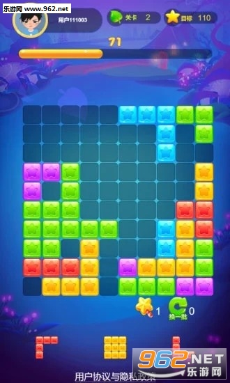 俄罗斯方块+消除,通过拖动方块摆满一行或一列即可消除方块,游戏体验全面升级!