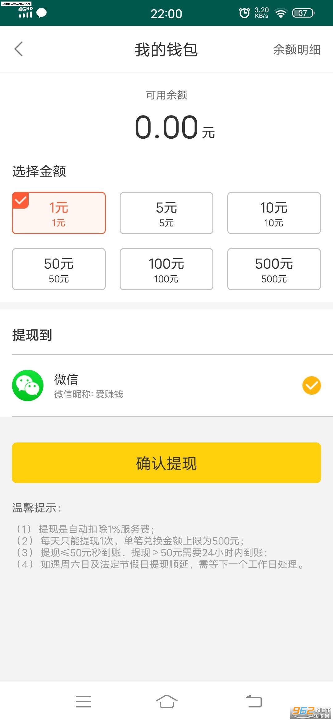 (2)每天只能提现1次,单笔兑提金额上限为500元;