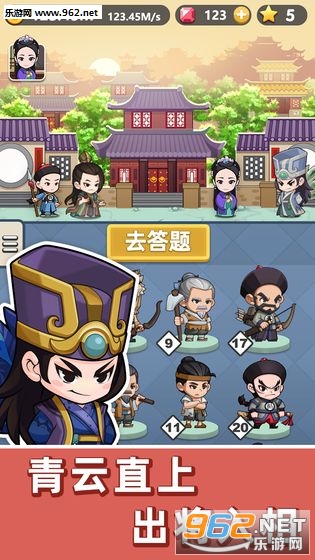 1、简单可爱卡通风格的游戏画面,各种各样的古代人物将会伴随着你一同进行挑战。
