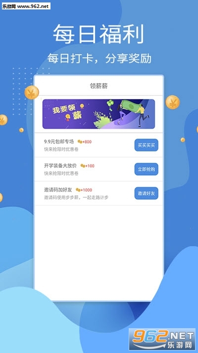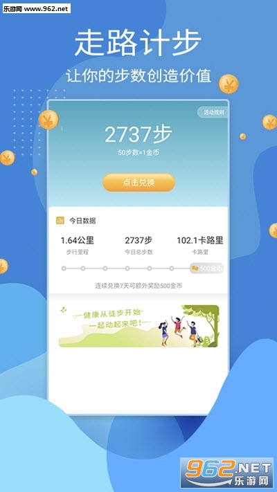 步数换金币:每日同步步数,可换取对应的金币数额,步数越多,金币越多。新用户首次绑定还将获得额外金币大礼包。