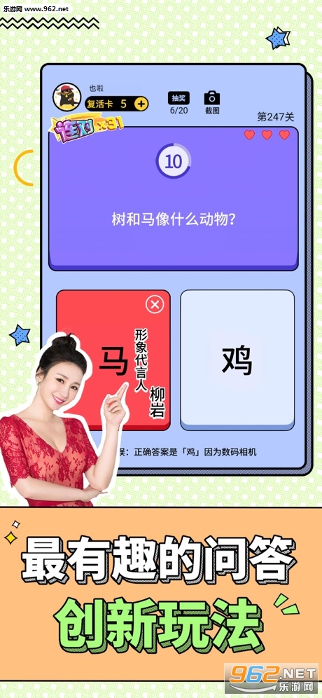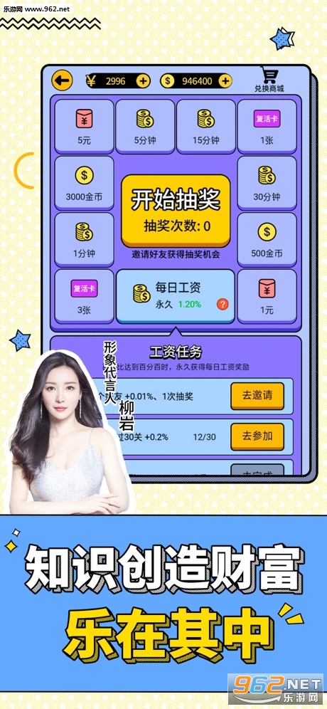 《最强答人柳岩红包版》是一款画面清新的由柳岩代言的通过答题来赚钱的游戏,游戏中有着众多的题目等着你来挑战,玩家可以和在线的小伙伴一起pk,每个问题的时间都是有限的,玩家需要快速的做出回答,全部答完之后根据分数进行排名,冲榜的朋友还有机会瓜分百万红包。
