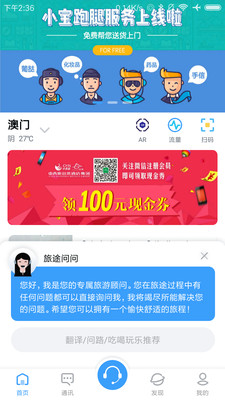 有温度的境外游人工服务,一对一24小时真人线上问答。问路、翻译、找餐厅、逛景点、送医、跑腿、送货、行程攻略,通通可撩。出境游,放心游。
