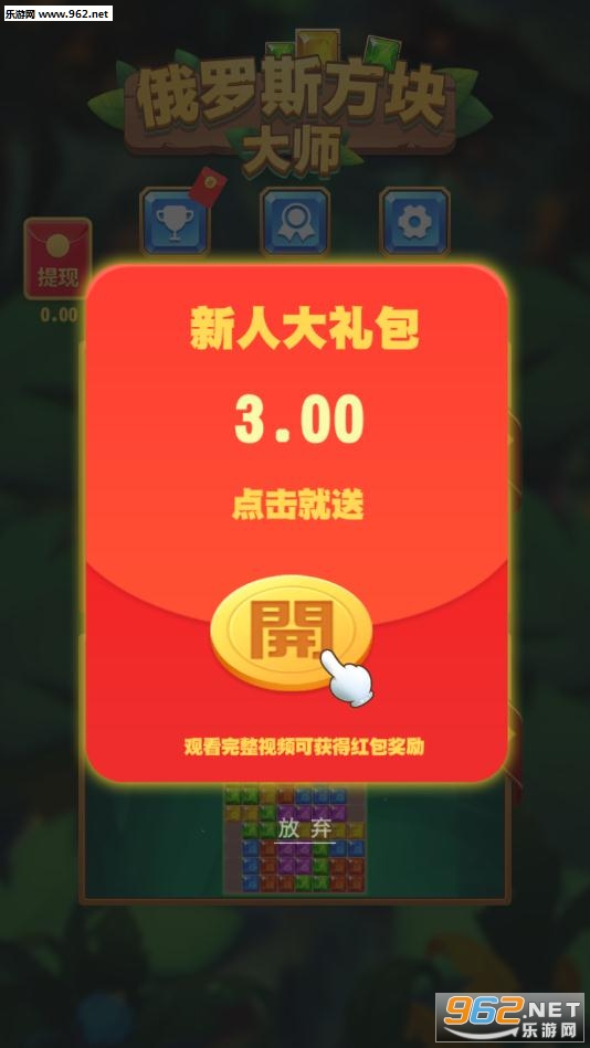 《俄罗斯方块大师红包版》是一款超级好玩的俄罗斯方块消除手赚平台,将消除的玩法和俄罗斯方块的元素融合,让你在这里合理的排放方块,想办法达到消除的效果,每天完成各种任务和关卡之后还能领红包哦,奖励多多,快来下载吧!