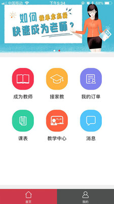 这是为老师提供的客户端,用户在软件内上传自己的信息选择成为一名学弟学妹平台的教师,家长直接在线下单并且进行支付,使用非常方便。
