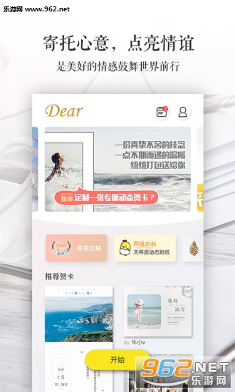 《寄意app》原名G2U,这是一款非常好用的电子贺卡制作软件。海量的素材和场景,包括祝福、感谢、表白、愿望、喜讯、邀请等,还支持本地素材、个性编辑、定制音乐等功能,只需简单几步,就能制作最个性时尚的电子贺卡。感兴趣的用户可以下砸寄意手机版!