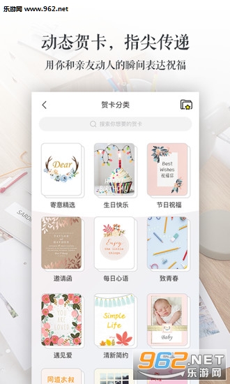 贺卡编辑更简单了,场景更加丰富了,还有贴心的搜索功能,丰富的贴纸也让你的问候更独具一格哦~