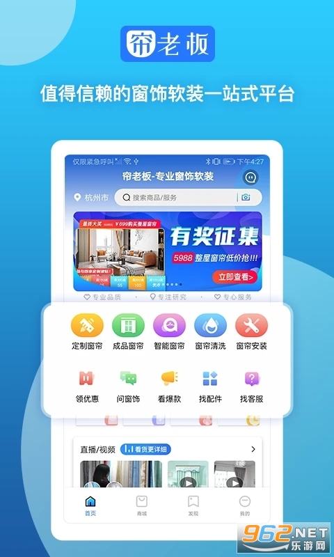 《帘老板app官方版》是一款非常实用的窗饰软装一站式服务平台,用户可以在这里一站式解决家,公司或者各种场所中窗饰问题,在线挑选,购买相关的产品,搜索对应的周边门店,快速解决售后服务等问题,非常的方便,赶紧来下载吧!