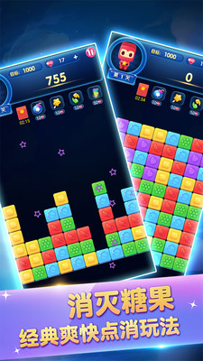 精心设置的更多玩法供你选择!糖果模式,拖动模式,方块模式 ,精彩的闯关模式多种创意道具组合,每个方块都充满意外!