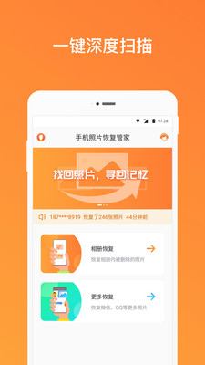 《手机照片恢复管家安卓版》是一款非常不错的手机照片恢复软件,操作方式简单易上手,用户们只需要通过简单的一键点击的方式,自动的恢复,且不需要花费太多的时间,感兴趣的亲们赶紧下载吧。