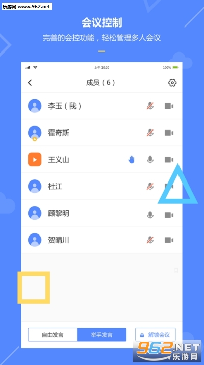 组织正式会议:可支持1000+人数的大型会议,同时可以通过会议模式的设置,如主讲模式,还原线下真实会议的场景,保持会议严肃氛围。丰富的会控功能,主持人快速轻松的管控会议进程,可以通过自有发言、举手发言,控制会议发言节奏,通过会议计时,有效把控会议时长,会议锁定有效控制参会人员。