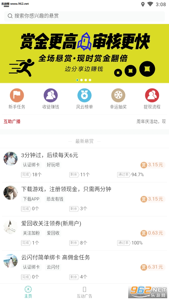 完美的手机赚钱app,这里为用户提供了海量赚钱任务,你可以根据自己的喜好进行选择,完成就能获得海量佣金,感兴趣赶紧来962下载体验吧!