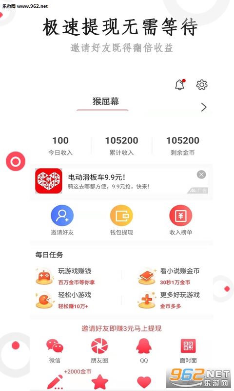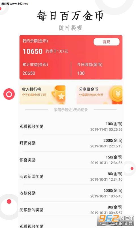 徒弟转发收益满5元,师傅可获得5元奖励,上线即瓜分20万,每日可领红包,每月永久瓜分