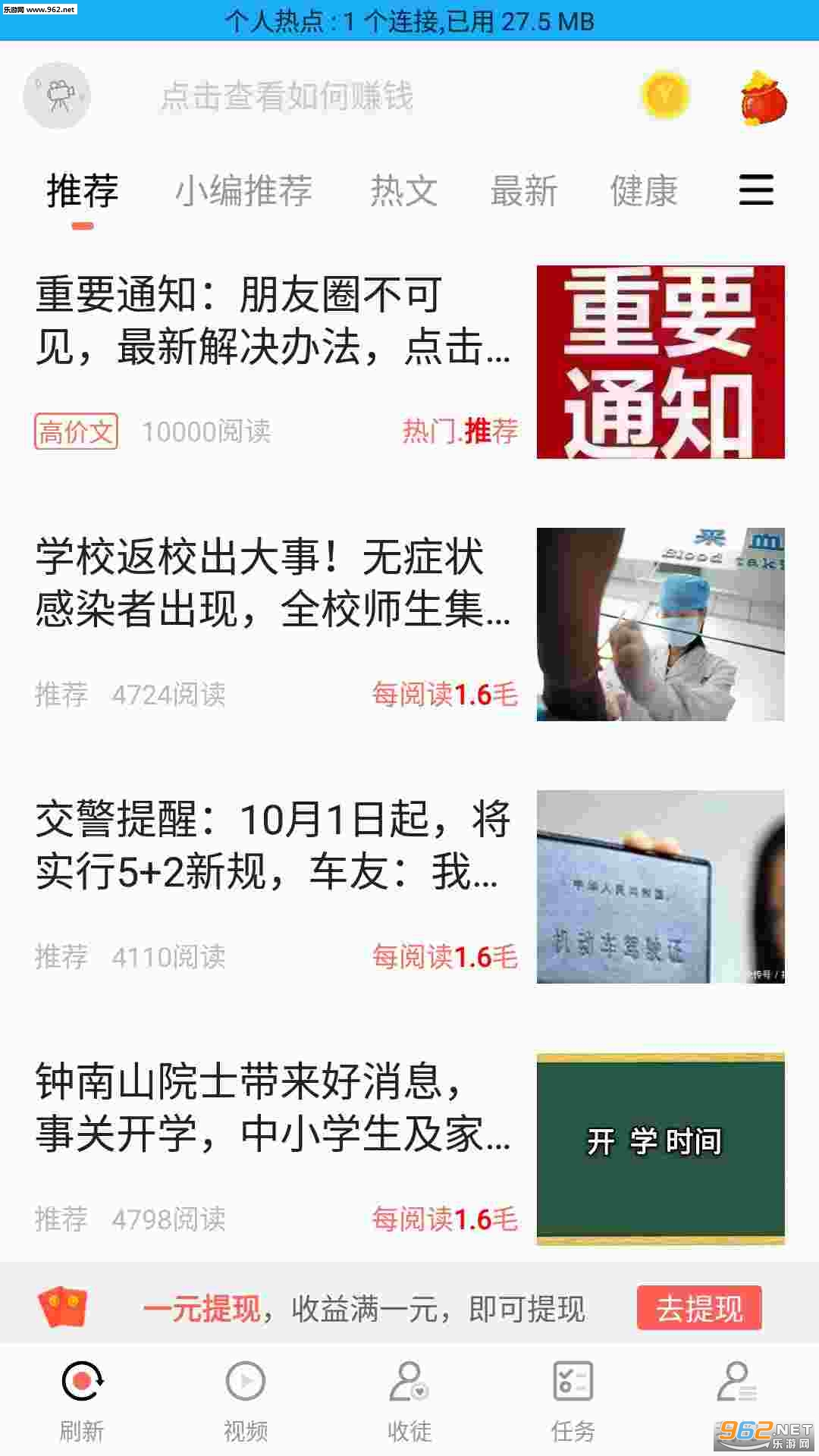 《玻璃看点阅读转发平台》是一款非常给力的手机阅读赚钱平台,在这里用户通过阅读平台的文章和资讯来获得收益,看得越多赚得越多,每天还能获得红包,感兴趣的朋友欢迎来962下载吧!