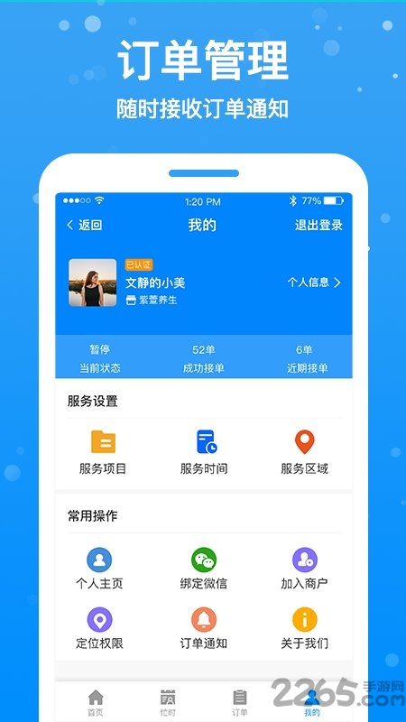 按个摩技师端app是一款主打按摩技师接单相关功能的软件。更好的为你带来快捷的接单相关平台,丰富的功能给你更好的体验,相信你已经迫不及待了,你还在等什么呢,心动不如行动,赶快来2265安卓网下载试试吧!