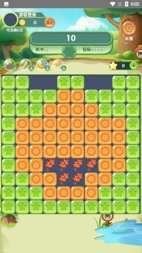 关卡里面有很多各样星星形状的糖果,通过滑动排列,让三个一样的处在一条线上就可以消除了。
