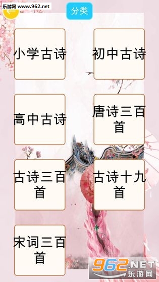 3.游戏里会有各种分类,有小学古诗,初中古诗,高中古诗和唐诗三百首等多种古诗分类。