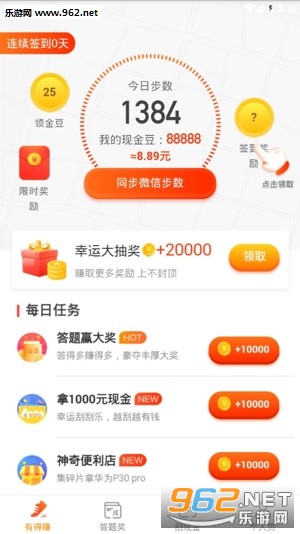 步步有奖是一款走路就可以挣钱的软件,每天运动步数换现金红包,旨在让用户每一步都有价值,在获得健康的同时,还可完成每日任务挣钱更多!走路就能挣钱,每天运动步数当钱花,提现立即到账,走的越多,挣得越多。