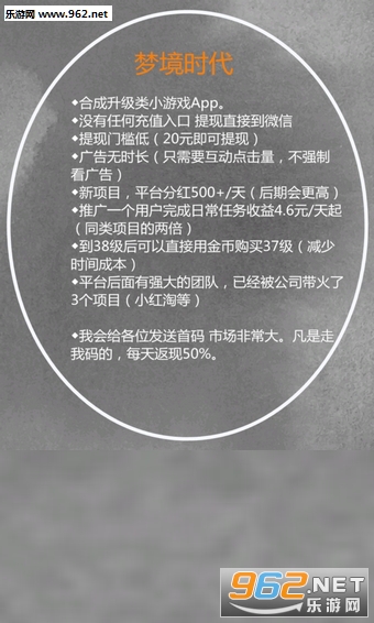一款非常给力的合成赚钱软件,简单的赚钱方式,只需要按照要求进行合成游戏即可,享受一边娱乐一边赚钱的完美体验,感兴趣快来962下载吧!