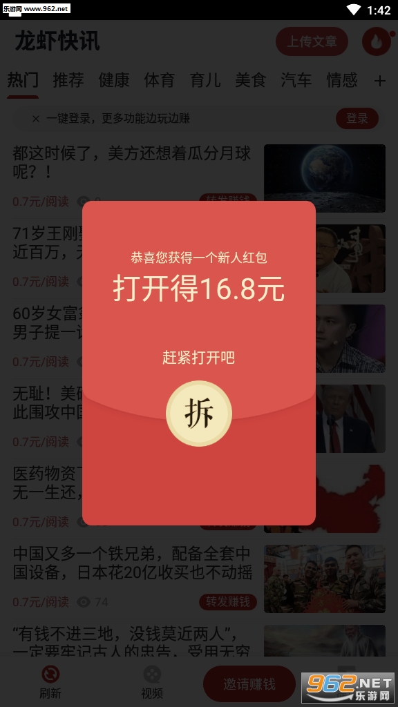 《龙虾快讯最新版》是一款非常给力的手机阅读赚钱平台,在这里用户可以享受和体验最佳赚钱模式,海量的赚钱资讯等你来看,每天躺在沙发上就能获得可观收益,感兴趣快来962下载吧!