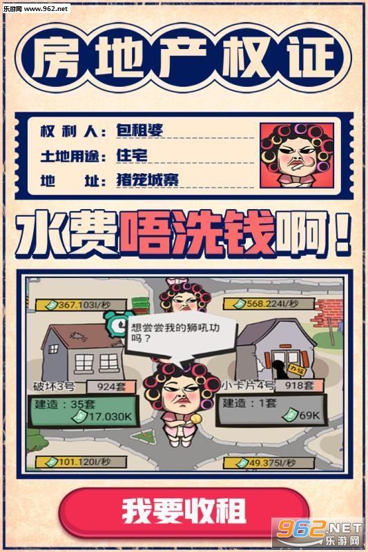 《一起来收租红包版》是一款非常给力的玩游戏赚钱软件,在这里用户可以体验一边玩经营游戏一边赚钱的体验,操作非常简单,赚钱也轻松,是你打发无聊的时间最好选择,喜欢的快来962下载吧!