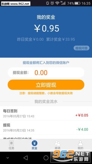 轻松的手机赚钱软件,简单的赚钱方式,只需要按照要求完成规定的任务即可,操作十分简单,赚钱也轻松,非常适合打发无聊的时间,喜欢就来962试试吧!