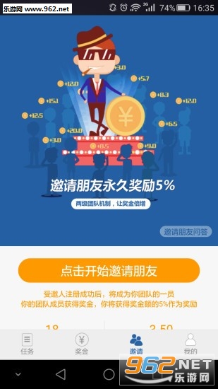 3.邀请好友参与任务,还可领取好友完成奖励的50%。好友完成的任务越多,赚钱越多哦!